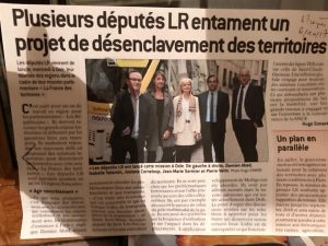 13 déplacements sont prévus. J’ai fait le premier ce mercredi et ce jeudi dans la région Bourgogne Franche-Comté avec mes collègues Damien Abad député de l’Ain , Rémi Delatte député de la Côte-d’Or, Annie Genevard députée du Doubs, Jean-Marie Sermier député du Jura, Isabelle Valentin députée de la Haute-Loire et Pierre Vatin député de l’Oise. Le thème était : quelles solutions pour désenclaver nos territoires ?