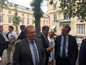 Mercredi 20 juillet, devant l’Assemblée à la rencontre des responsables de la fédération nationale bovine, de son président Bruno Defayet et du rapporteur LREM du projet de loi agricole.
