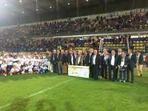 Hier soir avant de repartir pour Paris, petite halte à Gueugnon au match de gala qui opposait les anciens du FC Gueugnon à des joueurs de renommée internationale parmi lesquels Didier Deschamps ! Une ambiance exceptionnelle au stade Jean Laville; merci monsieur Canard pour cette très belle manifestation au profit de profit de l’association « + de Vie» présidée par Bernadette Chirac, de l’URMA parrainée par Laurent Blanc, et de l’association « Les papillons blancs d’entre Saône-et-Loire » basée à Gueugnon et bravo au Variétés Club de France pour cette soirée unique en Pays Charolais-Brionnais !