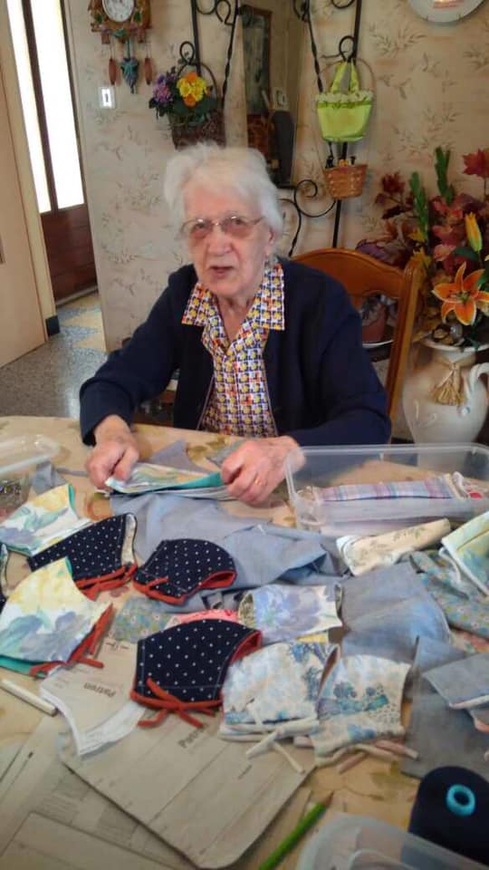 Thérèse Lapalus de Dyo, 83 ans, couturière à la retraite.Après avoir réalisé plus de 80 masques en tissu pour les intervenants de l’ADMR, Thérèse poursuit avec la confection de masques pour les 20 enfants du village. Un vrai bonheur pour tous les bénéficiaires et une vraie satisfaction pour madame Lapalus, ravie de se rendre utile en mettant son savoir-faire au service des autres.